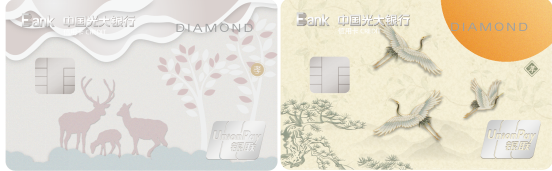 光大銀行“孝”主題系列銀行卡以鹿和仙鶴這兩種寓意健康長壽的動物為主要元素,以粉、白、淺黃等柔和的顏色為主色調,畫面風格溫馨安詳,讓人心生感動。