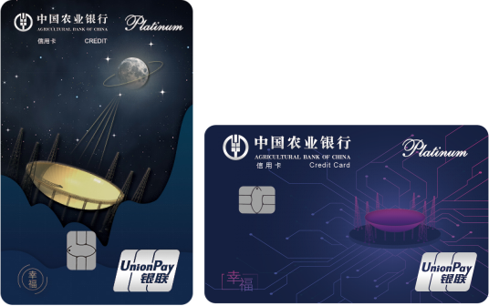 農業銀行追夢人系列銀行卡以中國天眼、中國芯片、太陽系等代表著科技創造與夢想的物品為主要元素,以肅穆神秘的藍色、金色、紫色為主要元素,畫面風格充滿科技感,充分展現了中國對太空夢的追求。