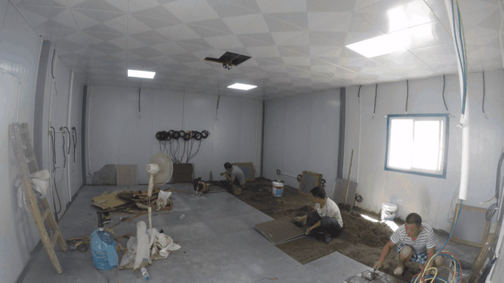 水泥沙找平后開始鋪磚工作,至9月7日完成