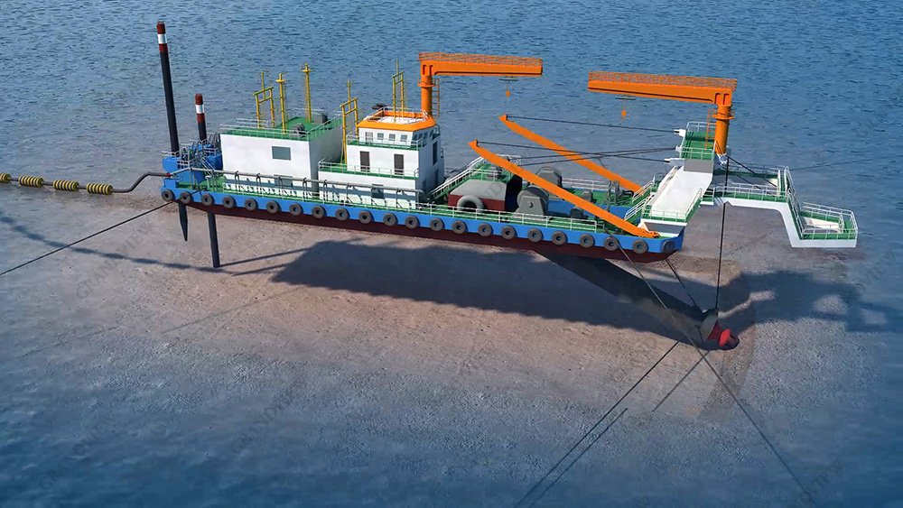 絞吸船清淤、臨時圍堰施工、疏浚吹填施工等作業過程,多方位角度、全景加特寫的鏡頭以成熟的動畫技術加以展現。